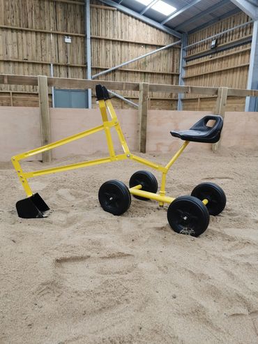 Our Crane Construction Site is 40ft x 40ft and holds 90 tonnes of Play Sand. We have Elvis the Excavator which includes a slide. We then have two small ride on excavators, buckets, spades and we even have hi-viz, goggles and hard hats for the children to get into the role-play side of things if they wish.